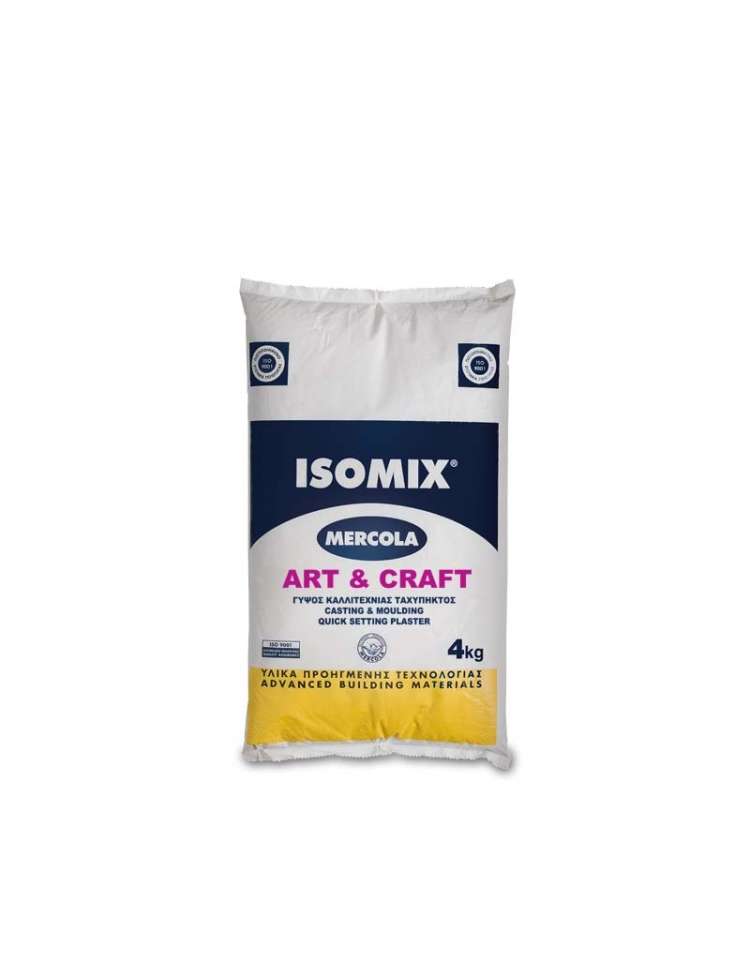 Ο ISOMIX ART & CRAFT είναι γύψος καλλιτεχνίας ελεγχόμενης πήξεως. Βασίζεται σε ειδική ποιότητα γύψου και έχει ειδικά πρόσμικτα που προσδίδουν εξαιρετική εργασιμότητα, πρόσφυση, αντοχή, πλαστικότητα και ελεγχόμενη πήξη. Αναμιγνύεται εύκολα με νερό και δημιουργείται ένα κρεμμώδες μίγμα με ομοιογενή υφή. Πάνω στην επιφάνειά του μπορούν να αποτυπωθούν, με μεγάλη ακρίβεια, λεπτομέρειες. Οι ιδιότητές του αυτές τον καθιστούν κατάλληλο για την κατασκευή γύψινων αντικειμένων, όπως κορνίζες, διακοσμητικές λεπτομέρειες ταβανιών κλπ. Η αντοχή και η ελεγχόμενη διάρκεια πήξης του τον καθιστούν επίσης κατάλληλο για την χρήση του σε καλούπια σε καλλιτεχνικές εφαρμογές. Επίσης ενδείκνυται και για την κατασκευή εκμαγείων.