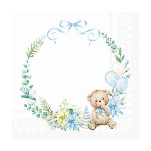 Χαρτοπετσετα για decoupage, 1τεμ, Αρκουδακι και στεφανι αγοριστικο