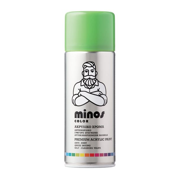 Χρώμα σπρέυ MINOS 400 ml σε λαχανί χρώμα με γυαλιστερό φινίρισμα. Εξαιρετικής ποιότητας, απόδοσης και αντοχής, ιδανικό για γενική χρήση