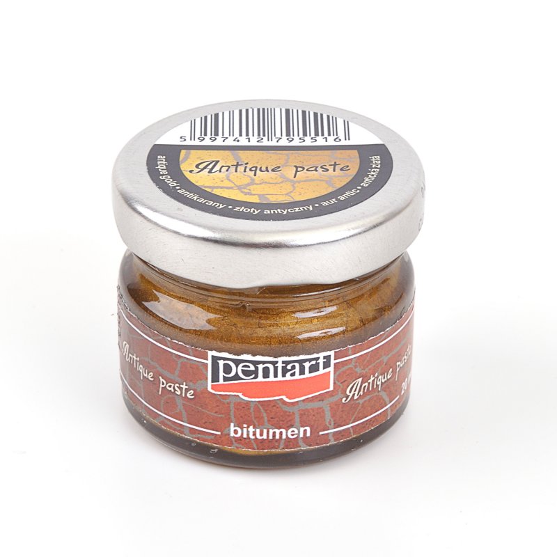 Μια πυκνής σύστασης πάστα για να επιτύχουμε ένα παλιό ή μεταλλικό εφέ καθώς επίσης για να τονίσουμε τα σπασίματα σις επιφάνειες που έχουμε δημιουργήσει με το κλασικό κρακελέ της Pentart ή το fineline crackle. Τρίψε ένα σρώμα πάστας πάνω στην επιφάνεια που θέλετε να δημιουργήσετε το εφέ. Αφαιρέστε τυχόν υπολλείμματα με ένα στεγνό βαμβακερό πανί ή με ύφασμα ποτισμένο με νέφτι. Αραιώνετε με νέφτι.