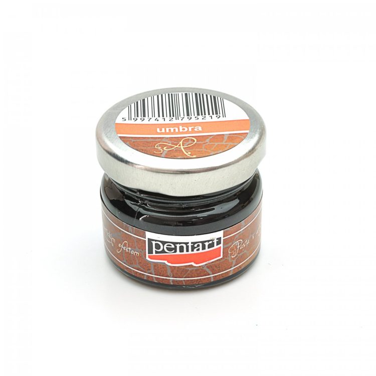 Μια πυκνής σύστασης πάστα για να επιτύχουμε ένα παλιό ή μεταλλικό εφέ καθώς επίσης για να τονίσουμε τα σπασίματα σις επιφάνειες που έχουμε δημιουργήσει με το κλασικό κρακελέ της Pentart ή το fineline crackle. Τρίψε ένα σρώμα πάστας πάνω στην επιφάνεια που θέλετε να δημιουργήσετε το εφέ. Αφαιρέστε τυχόν υπολλείμματα με ένα στεγνό βαμβακερό πανί ή με ύφασμα ποτισμένο με νέφτι. Αραιώνετε με νέφτι.